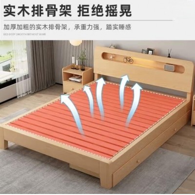 英环实木床双人1.8米现代简约1.5米家用主卧大床出租屋床1.2m单人床