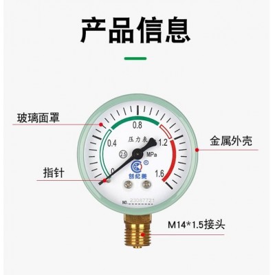 子琪Y60压力表自来水水压表空气压力表地暖分水器打压测量4分/6分一寸