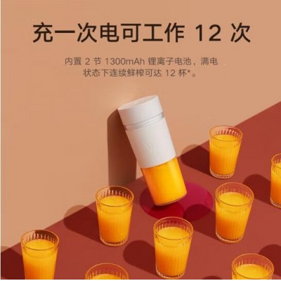 小米便携随行榨汁杯充电迷你无线榨汁机果汁机多功能料理机搅拌机大容量快速鲜榨榨汁杯 白色